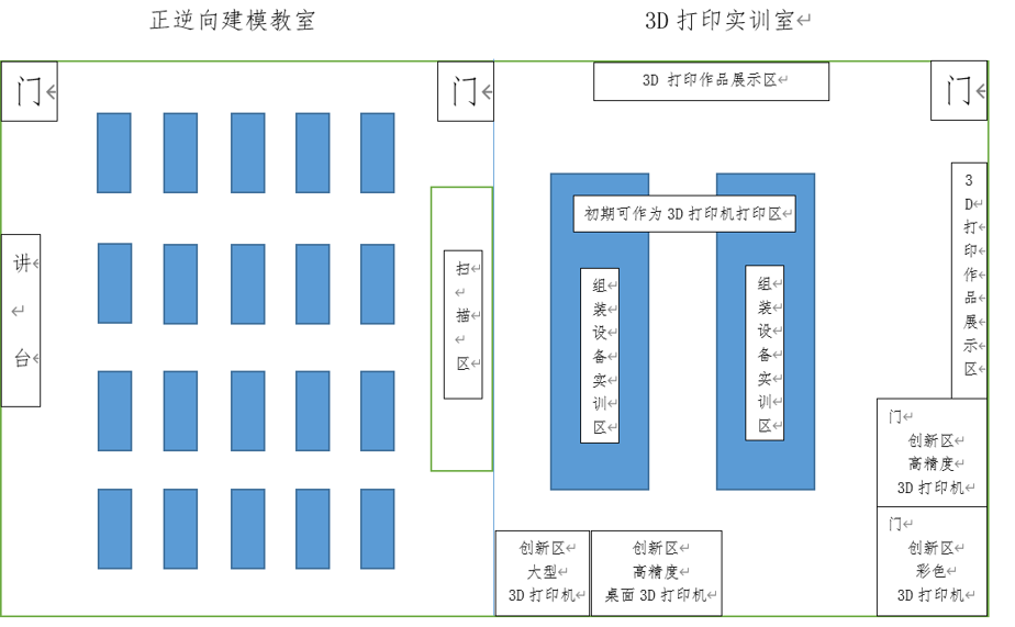 北京某學院3D打印實訓室 根據(jù)校方要求,我們了解到3D打印實訓室總規(guī)劃面積為200 m2。根據(jù)實訓室的用途,需要采購的設備,可分為五大區(qū)域 實訓室布局規(guī)劃 根據(jù)校方要求,我們了解到3D打印實訓室總規(guī)劃面積為200 m2。根據(jù)實訓室的用途,需要采購的設備,可分為五大區(qū)域: 展示區(qū) 三維模型設計區(qū) 逆向成型設計區(qū) FDM組裝與調試區(qū) 3D打印創(chuàng)新區(qū) 部分設備介紹 Artec/EVA 彩色手持三維掃描儀 可提供快速、準確、肌理豐富的完美3D掃描。掃描過程迅速,色彩鮮亮,分辨率高,幾乎可用于所有場合,且輕便、快捷、多功能 適用于掃描藝術類等不規(guī)則、大型作品的掃描 FARO?DESIGN SCANARM 高精度三維掃描臂 采用光學領域中領先的藍色激光技術,具有極高的掃描速度,可生成高分辨率點云數(shù)據(jù),無需貼點 ?? 適用于掃描工業(yè)類等精密零件掃描 YUNS?Y100組裝打印機 結構簡單,是3D打印入門級設備,價格便宜 交由學生拆裝,了解設備結構,學習3D打印成型原理 YUNS Y300桌面FDM打印機 打印尺寸大,成型速度快,適合中小批量打印 可批量打印學生創(chuàng)意作品 UNIZ桌面機 DLP樹脂打印,大成型尺寸,高精度打印、高表面質量、全自動支撐生成 可直接打印學生畢業(yè)設計等高精度模型 Ultra?3SP 全新的3SP?(掃描、旋轉、選擇性光固化)技術,從STL文件快速精準地打印輸出。使用多腔二極管激光器的操作成本低;最少的材料損耗降低成本。較大的成型空間 工業(yè)級精度,可直接生產(chǎn)出誤差內的成型零件 Objet260 樹脂噴射彩色3D打印機,可使用一系列多種材料組件(包括剛性、柔性、透明和耐用組件)創(chuàng)建顏色鮮亮的原型 色彩豐富,成品無需上色 最終結果 3D打印實驗室功能實現(xiàn): 設計可以在較短的時間很快實現(xiàn)并得到驗證及完善設計,充分發(fā)揮設計創(chuàng)造力; 結合3D打印實驗室配置的設備,可充分有效的將自身設計的物品制作出來,創(chuàng)造產(chǎn)品真實呈現(xiàn)給人們; 基于空間內的設備設施,可用于創(chuàng)客體驗、培訓、競賽、技術交流等; 整個制作過程在3D打印實驗室內完成,可用于教學,提升人員自身技能及拓寬生產(chǎn)制造思路。 更多詳情請點擊——教育科研 上頁 下頁