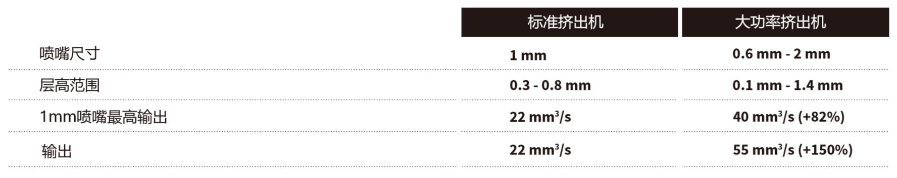 裝配了新型大功率加熱頭,配合0.6 mm, 1mm和2mm噴嘴,用戶可以更靈活地,快速獨立地在噴嘴之間進行切換。