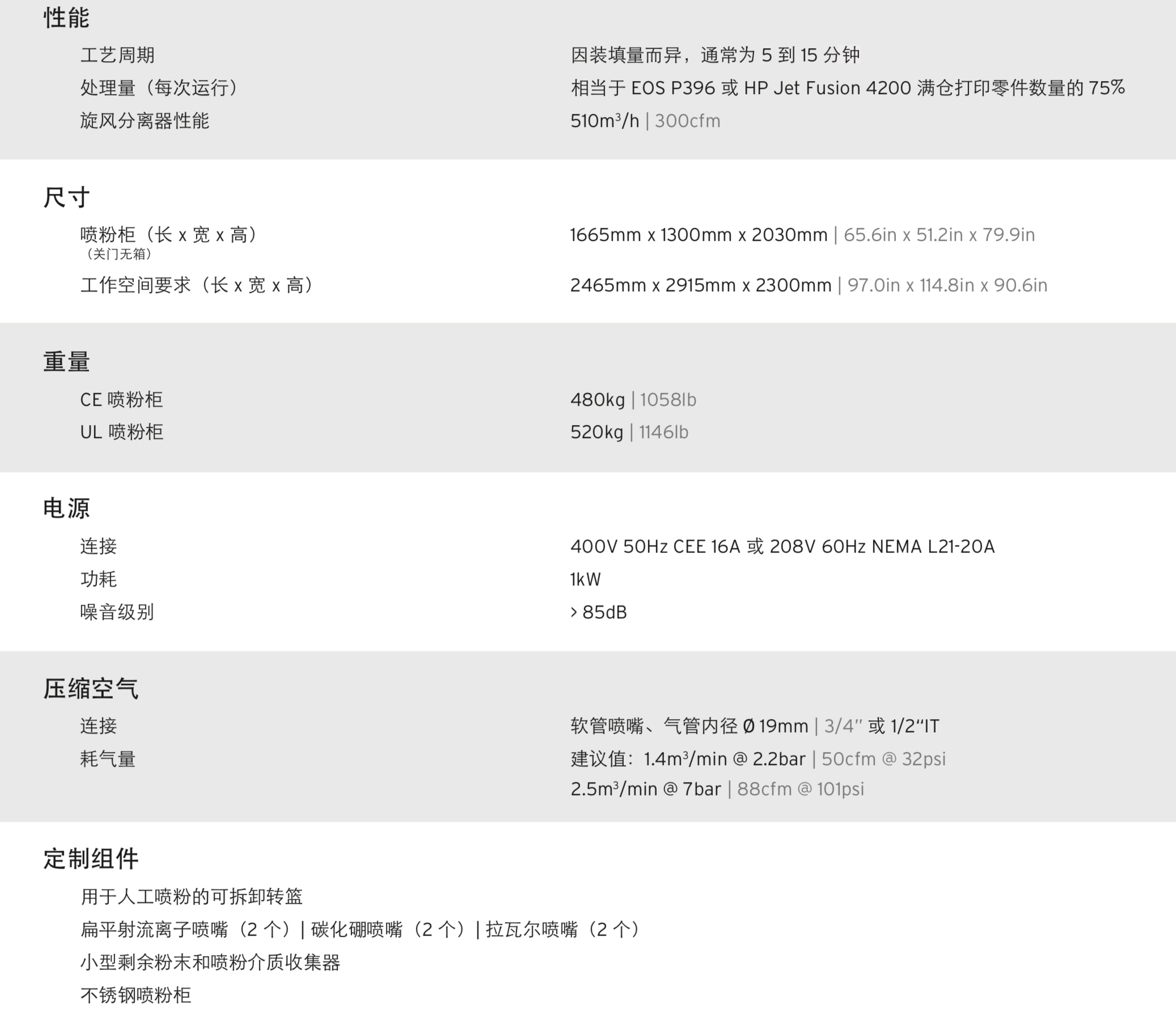Powershot C 可自動清除多數(shù)零件上的多余粉末,同時也支持對大型或復雜零件進行人工噴粉, 提高了使用的靈活性。