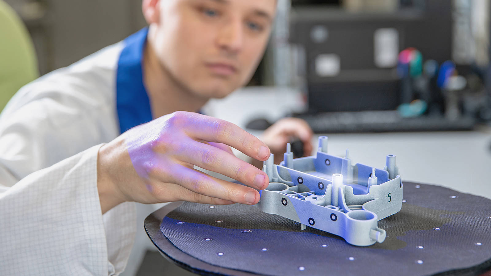 這款 Laser Line Probe (LLP) 適用于掃描數(shù)據(jù)收集速度至上的大型部件或昂貴的表面區(qū)域。超寬激光光譜,單遍掃描即可提供雙倍的覆蓋范圍,使用戶收集數(shù)據(jù)的速度比 xR 快 2.6 倍,比 xP 快 1.6 倍。收集數(shù)據(jù)所需的掃描遍數(shù)更少,意味著更快獲取掃描結果,以及更高的生產(chǎn)力。 | ? | 業(yè)界首創(chuàng)的集成式 8 軸旋轉掃描平臺可將掃描時間縮短 40%,同時保持精確性。該平臺可用于所有型號的 ScanArm;可以選擇 8 軸 QuantumS?ScanArm、8 軸 QuantumM?ScanArm 或 8 軸 QuantumE?ScanArm。 | ? | ? |